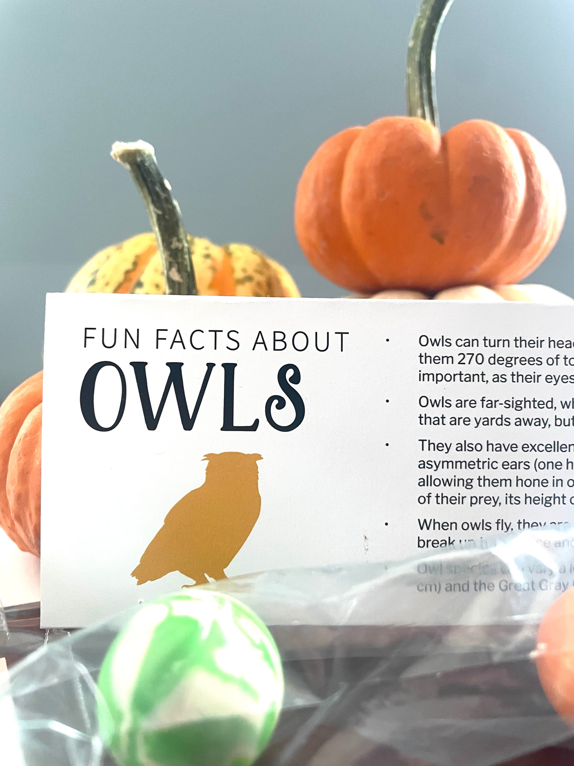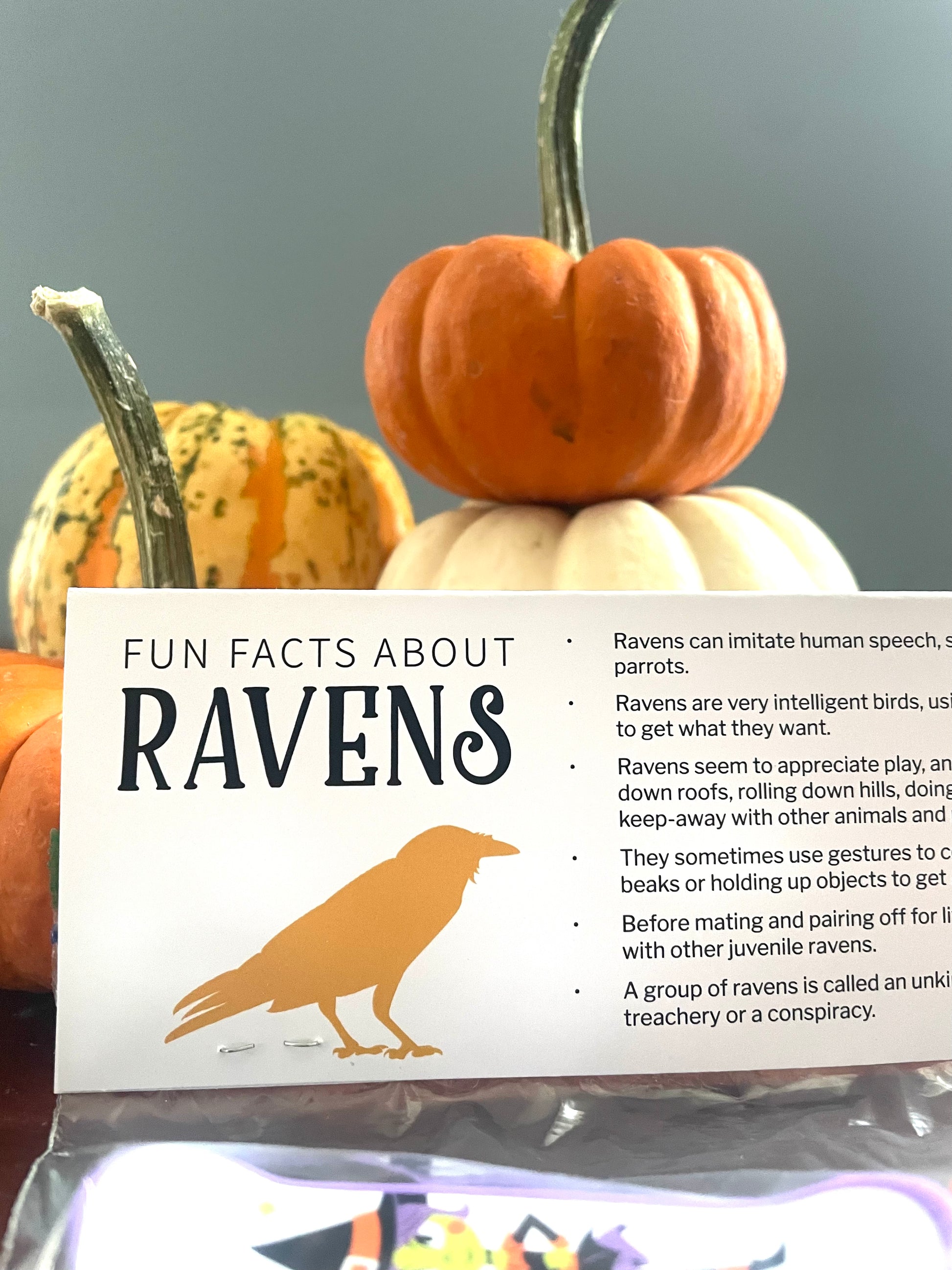 We've taken it up a notch by adding fun and educational content on the back: facts about each of the five featured 'Halloween' animals (owl, bat, wolf, raven, spider).